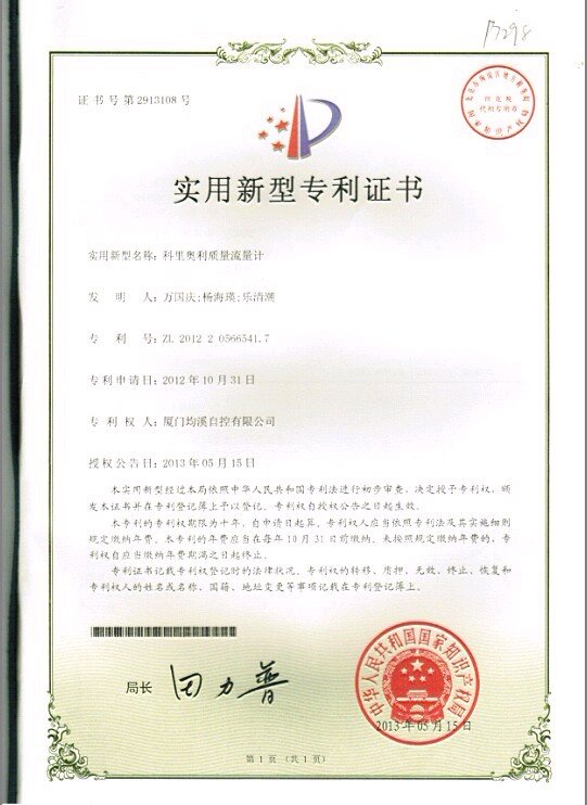 質(zhì)量專利證書